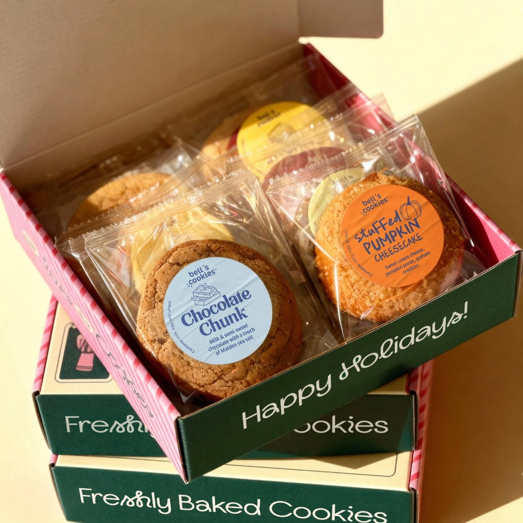 - Individually wrapped cookies with flavor stickers
